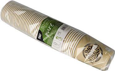 Anstelle einer herkömmlichen Kunststoff-Beschichtung besitzen diese Becher eine biologisch abbaubare PLA-Beschichtung. Aufgrund der Hitzebeständigkeit der Beschichtung eignen sich die Hartpapierbecher hervorragend für Heißgetränke wie beispielsweise den beliebten "Coffee to Go".