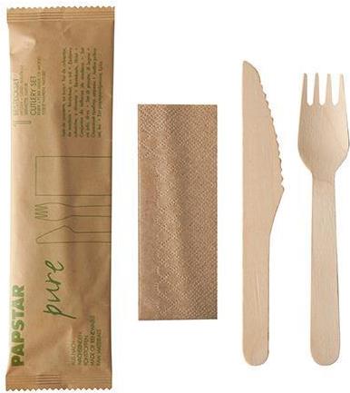 Papstar 88229 - 1 Person(en) - Einweggabel - Einwegmesser - Paper napkin - Holz - Natürlich - Monochromatisch - 50 Stück(e) (88229)