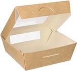 PAPSTAR Feinkostbox "pure", eckig, 750 ml, braun aus Pappe, Sichtfenster aus PLA-Kunststoff, biologisch - 1 Stück (86573)
