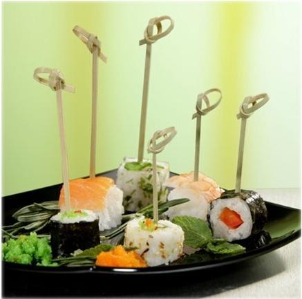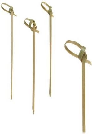 PAPSTAR Fingerfood-Spieße "Knoten", Länge: 60 mm aus Bambus, in Pappbox mit transparenter Haube - 1 Stück (16769)
