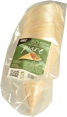 PAPSTAR Fingerfood-Spitztüte "pure", Durchmesser: 95 mm aus Holz, Länge: 85 mm, lebensmittelecht, geschmacksneutral, - 1 Stück (85676)