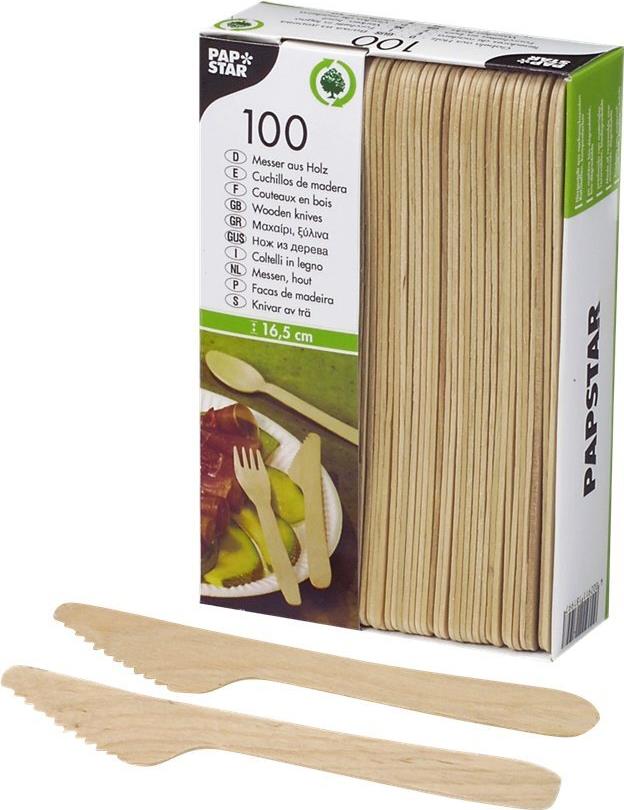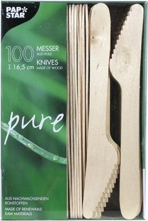PAPSTAR Holz-Messer "pure", Länge: 165 mm aus natürlich hellem Birkenholz, biologisch abbaubar - 1 Stück (18200)