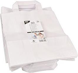 PAPSTAR Papier-Tragetasche, 220 x 100 x 280 mm, weiß aus Kraftpapier, 70 g/qm, Tragkraft: 6 kg, mit Tragegriff - 1 Stück (86454)