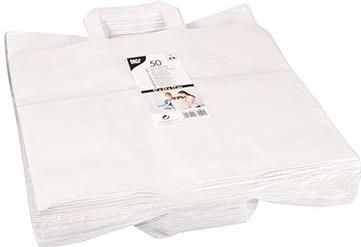 PAPSTAR Papier-Tragetasche, 320 x 170 x 270 mm, weiß aus Kraftpapier, 70 g/qm, Tragkraft: 5 kg, mit Tragegriff - 1 Stück (86450)