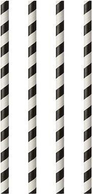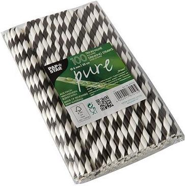 PAPSTAR Papier-Trinkhalm "Stripes", 200 mm, schwarz/weiß aus Papier, Länge: 200 mm, Durchmesser: 6 mm, nachhaltig - 1 Stück (87010)