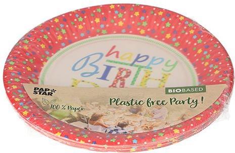PAPSTAR Papp-Teller "Happy Birthday", rund, 230 mm aus 100% Frischfaserkarton, lebensmittelecht, mit Motiv, - 1 Stück (88577)