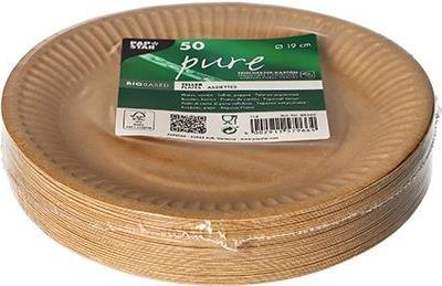PAPSTAR Papp-Teller "pure" rund, 190 mm, braun, 50er aus 100% Frischfaserkarton, lebensmittelecht, kompostierbar, - 1 Stück (88360)