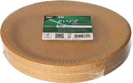 PAPSTAR Papp-Teller "pure" rund, 230 mm, braun, 50er aus 100% Frischfaserkarton, lebensmittelecht, kompostierbar, - 1 Stück (88361)