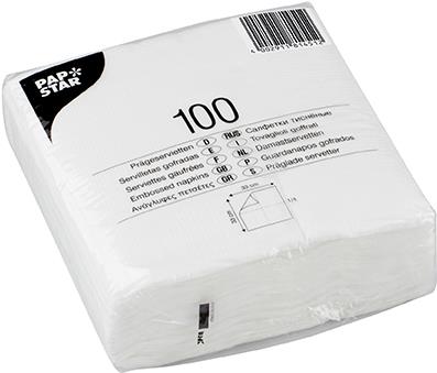 PAPSTAR Servietten, 330 x 330 mm, 1-lagig, weiß geprägte Uni-Servietten, 1/4 Falz, eingeschweißt - 1 Stück (81451)