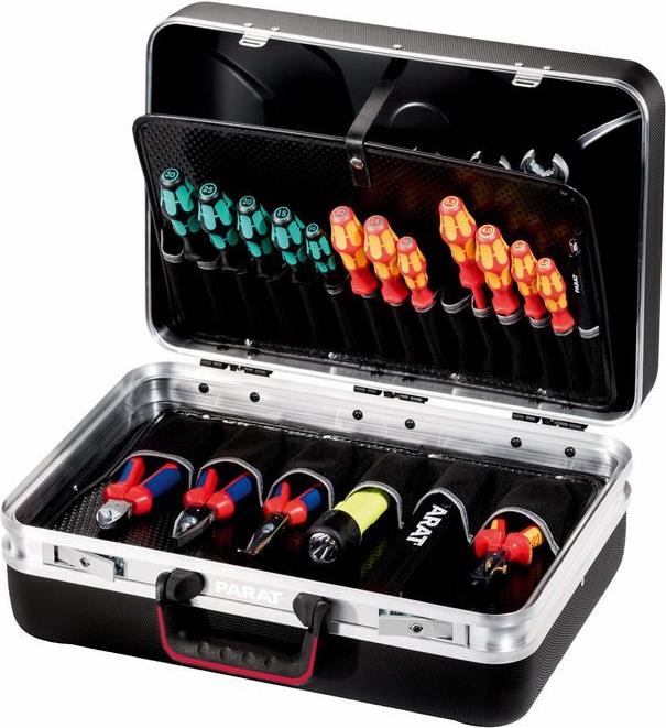 Das Design der Kofferschale besteht aus einem innovativen, strapazierfähigen und rutschfesten X-ABS-Oberflächenmaterial. Der kompakte Koffer hält wie gewohnt hohen Belastungen stand und bietet ein unschlagbares Preis-Leistungs-Verhältnis. Der Koffer verfügt über 21 Fächer, eine Abdeckplatte mit sechs großen Fächern und eine individuell unterteilbare Bodenwanne, die in gewohnter PARAT-Manier für Ordnung sorgt.
