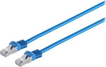 Patchkabel mitCat.7 Rohkabel und angespritztem Cat 6a RJ45 Stecker mit Rastnasenschutz, S/FTP, PiMF, halogenfrei, 600MHz, blau, 0,25m (75511-0.25B)