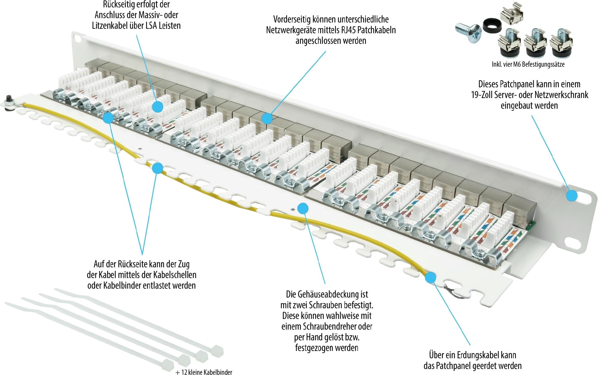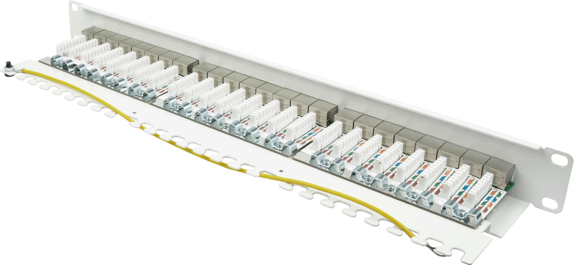 Patchpanel 48,30cm (19") Cat. 6A, 24-Port, 1 HE, STP geschirmt, werkzeugloses Öffnen, Reinweiß (RAL9010), Good (GC-N0146)