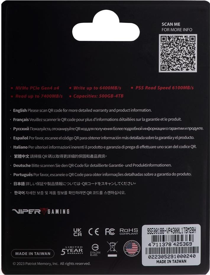 Graphen-Hitzeschild, PS5-kompatibel, SmartECC, thermal sensor, Host Memory Buffer (HMB), ONFi 5.0 flash, NVMe 2.0 |