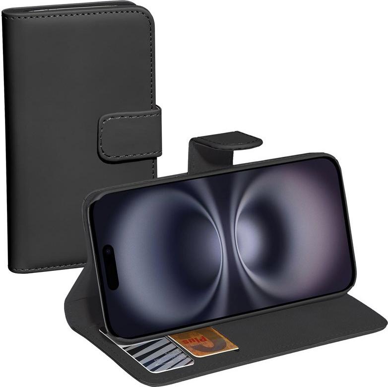 Die PEDEA Book Classic Schutzhülle wurde für Mobiltelefone entwickelt und bietet zuverlässigen Schutz ohne Abstriche beim Stil. Diese Klapphülle verfügt über eine seitliche Öffnung für einfachen Zugriff und einen Magnetverschluss, der Ihr Gerät sicher an seinem Platz hält. Außerdem bietet sie zusätzliches Fach für 3 Kreditkarten und Bargeld, was sie zu einer praktischen Wahl für unterwegs macht. Dank ihrer Standfunktion ermöglicht die Hülle bequemes Betrachten, egal ob Sie Videos ansehen oder videochatten.