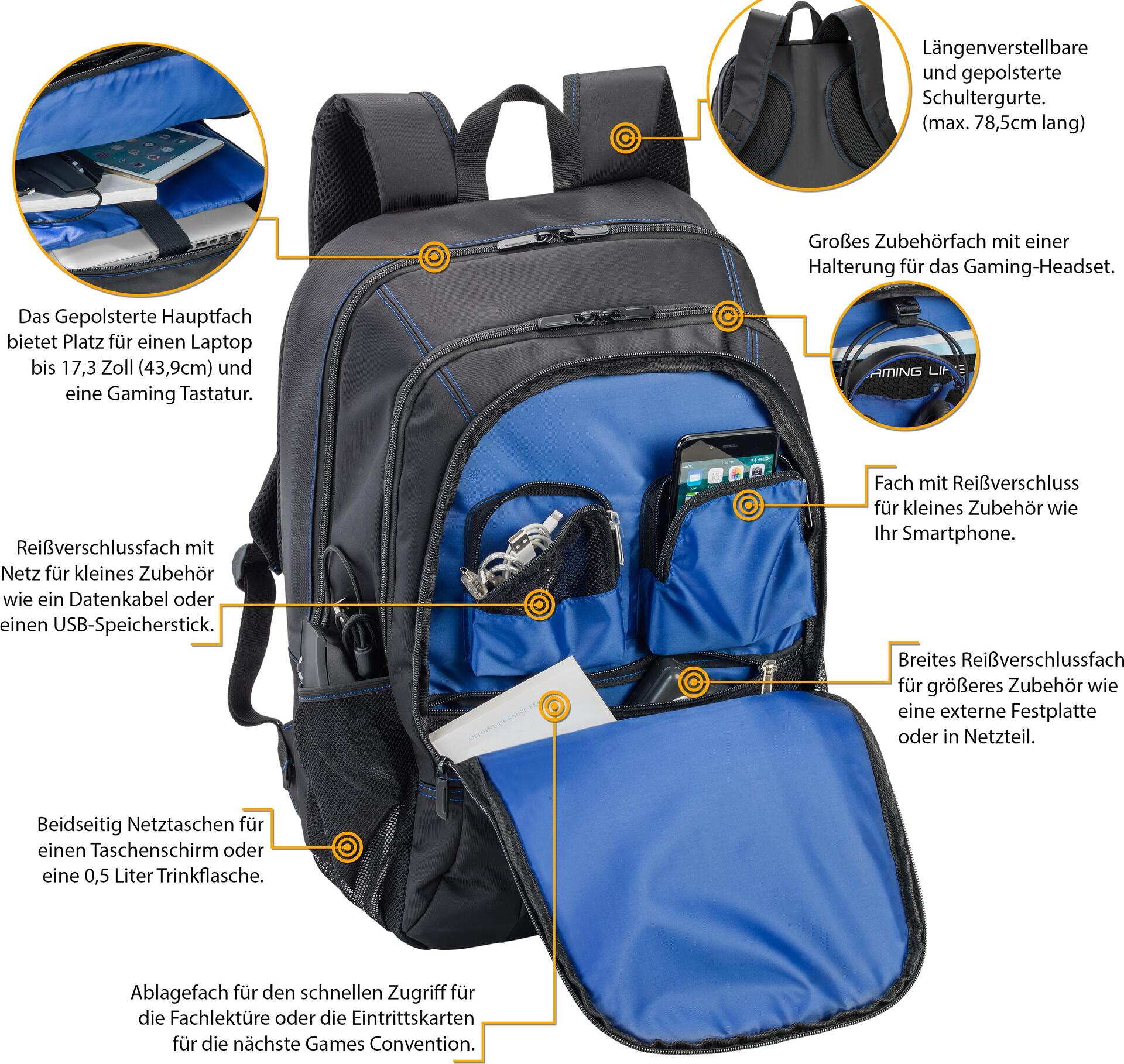 PEDEA Game - Notebook-Rucksack - 43,9 cm (17.3") - Schwarz/Blau (66069010)