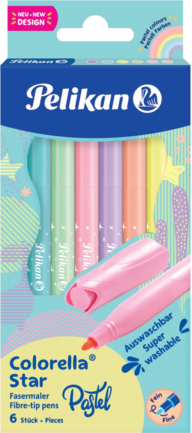Die Pelikan Filzstifte Colorella Star PASTELL sind sowohl für die Schule als auch für die Freizeit die perfekte Ausstattung. Die 6 ergonomisch durchdachten Fasermaler sind in einer umweltfreundlichen Karton-Faltschachtel ...