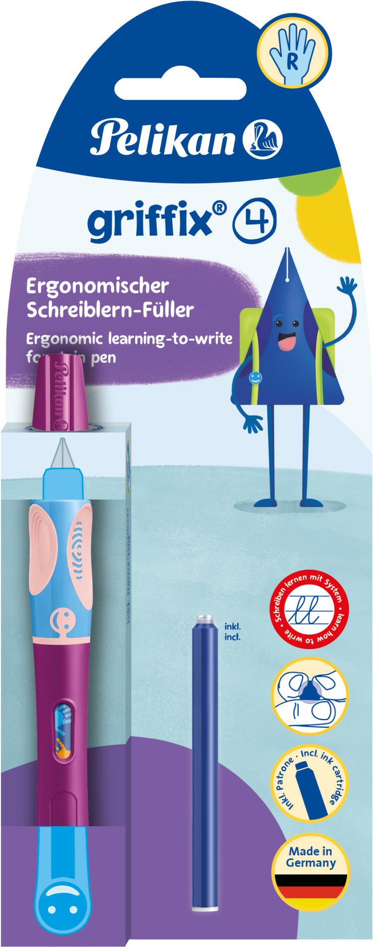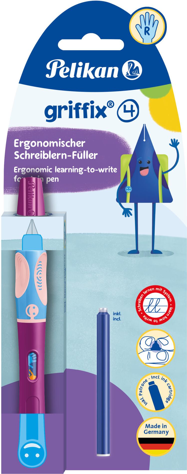 Pelikan griffix® Füller für Rechtshänder - Sweet Berry - Beere - Kartuschenfüllsystem - Blau - Kunststoff - Edelstahl - Rechtshändig (820325)