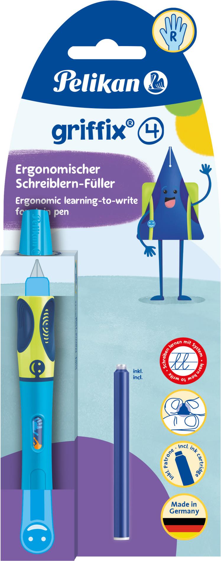 Pelikan griffix® Füller für Rechtshänder - Neon Fresh Blue - Blau - Kartuschenfüllsystem - Blau - Kunststoff - Edelstahl - Rechtshändig (820363)