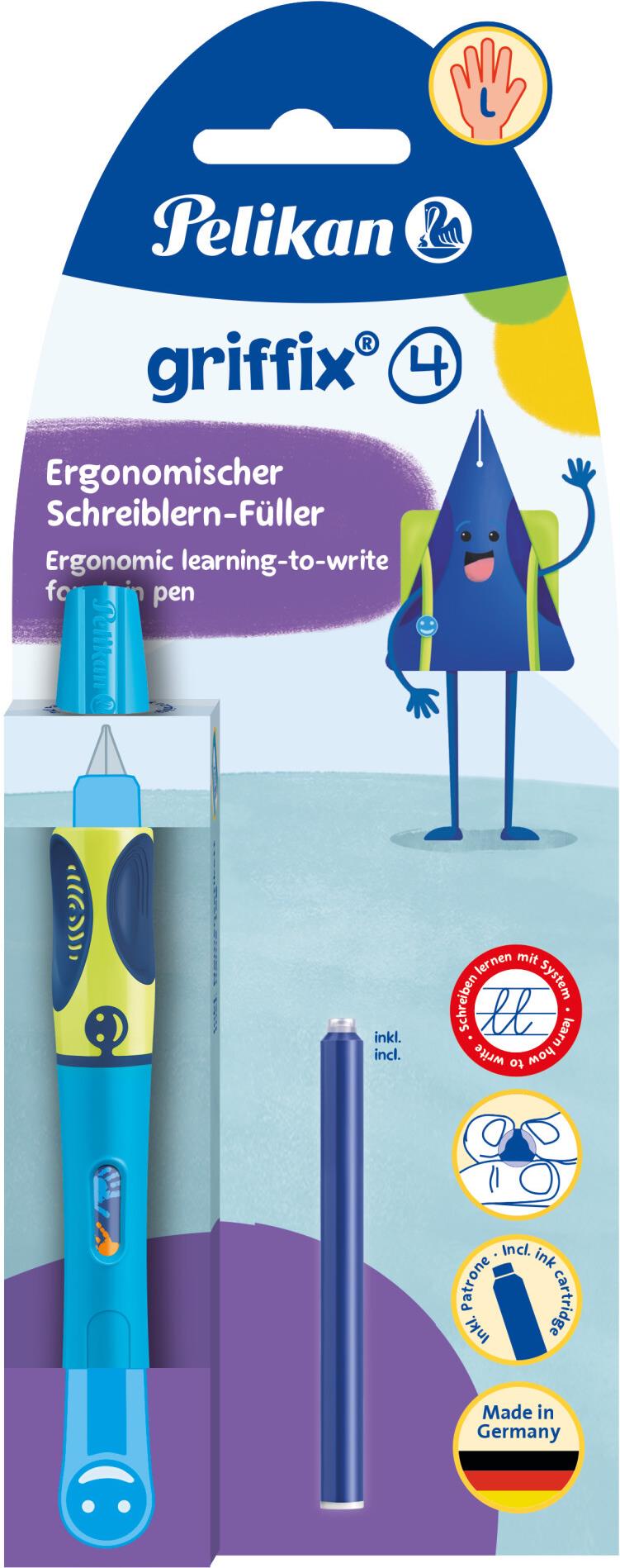 Pelikan griffix® Füller für Linkshänder - Neon Fresh Blue - Blau - Kartuschenfüllsystem - Blau - Kunststoff - Edelstahl - Linkshändig (820370)