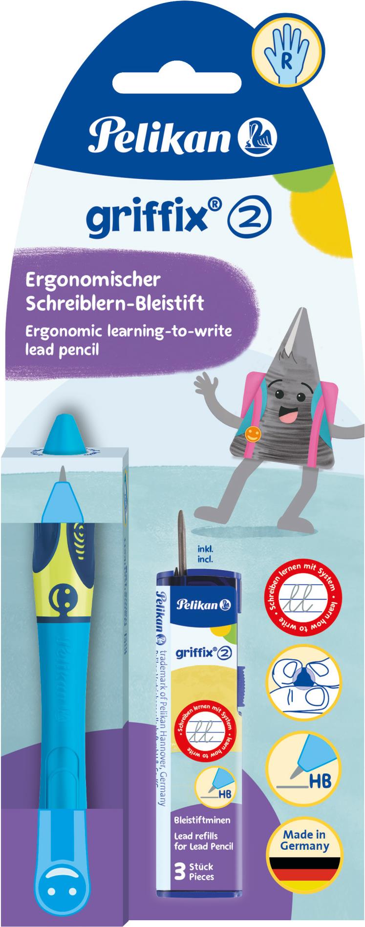 Pelikan griffix® Bleistift für Rechtshänder - Neon Fresh Blue - Blau - Kunststoff - Dunkles Grau - HB - Deutschland - 1 Stück(e) (820547)