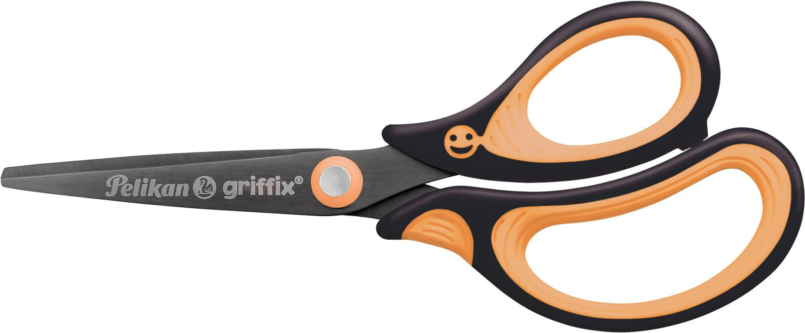 Pelikan griffix Schulschere, spitz, Neon Black mit Softgriff für komfortables Schneiden, mit Namensschild, - 1 Stück (819015)