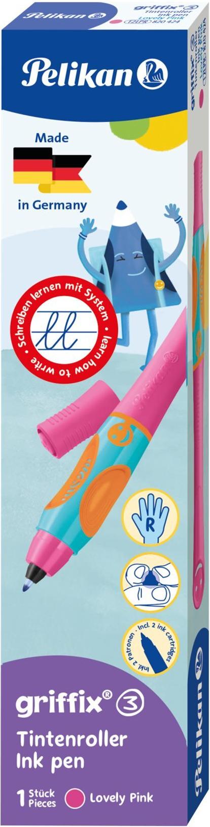 Pelikan griffix Tintenschreiber Lovely Pink für Rechtshänder, Schreiblernstift mit ergonomischer - 1 Stück (820424)
