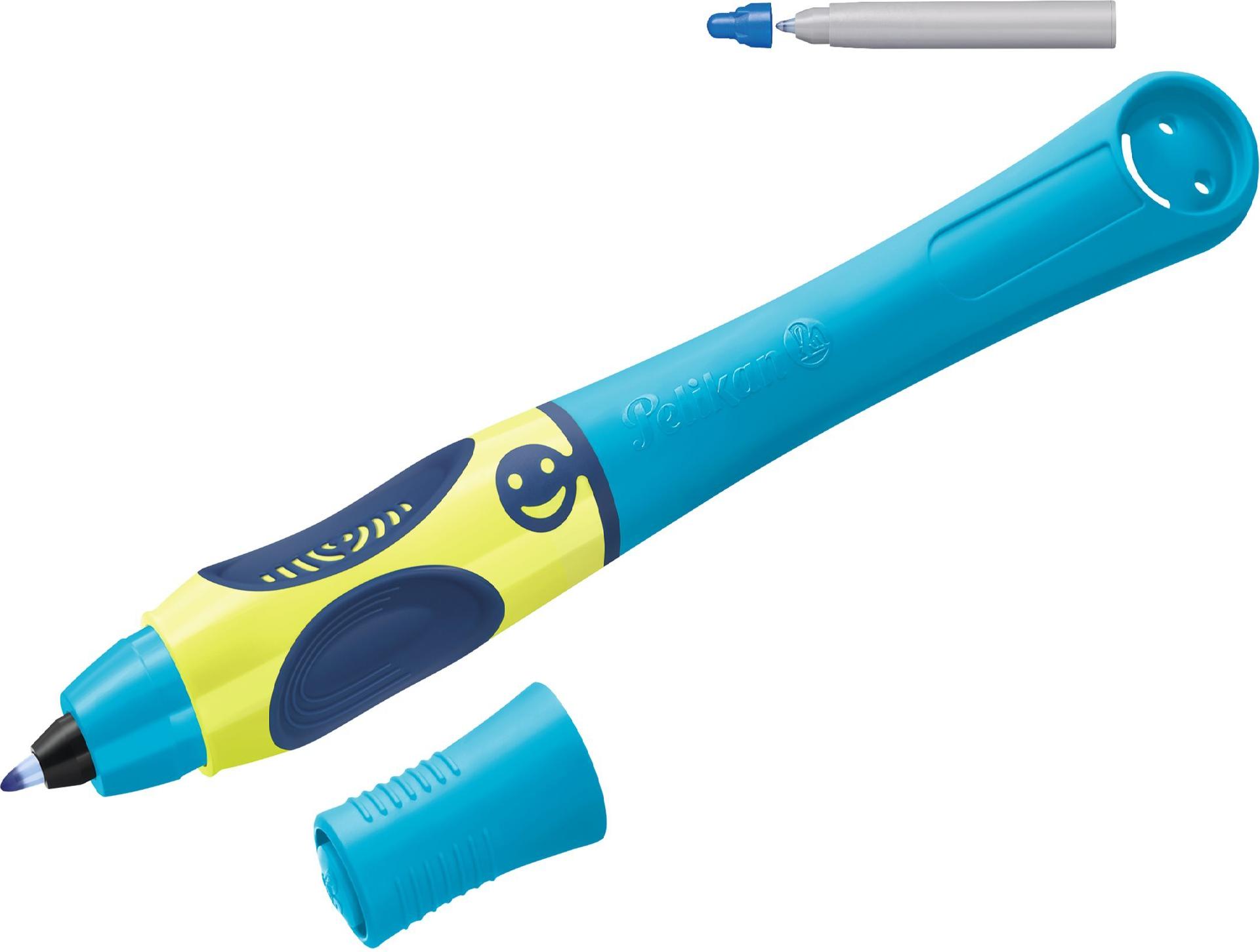 Pelikan griffix® Tintenschreiber für Linkshänder - Neon Fresh Blue - Anklippbarer versenkbarer Stift - Blau - Blau - Kunststoff - Linkshändig - Deutschland (820479)