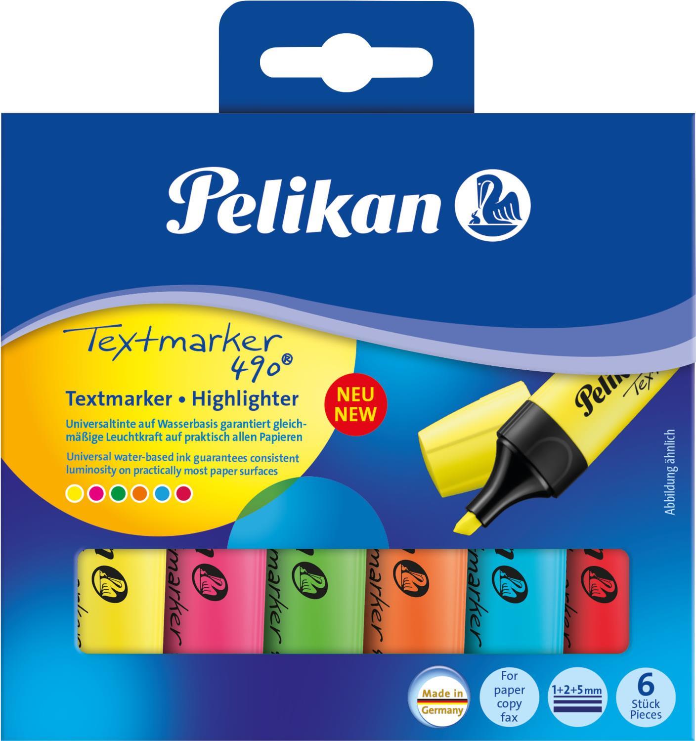 Pelikan Textmarker 490, 6er Etui, farbig sortiert Universaltinte auf Wasserbasis, Keilspitze zum Markieren - 1 Stück (814065)