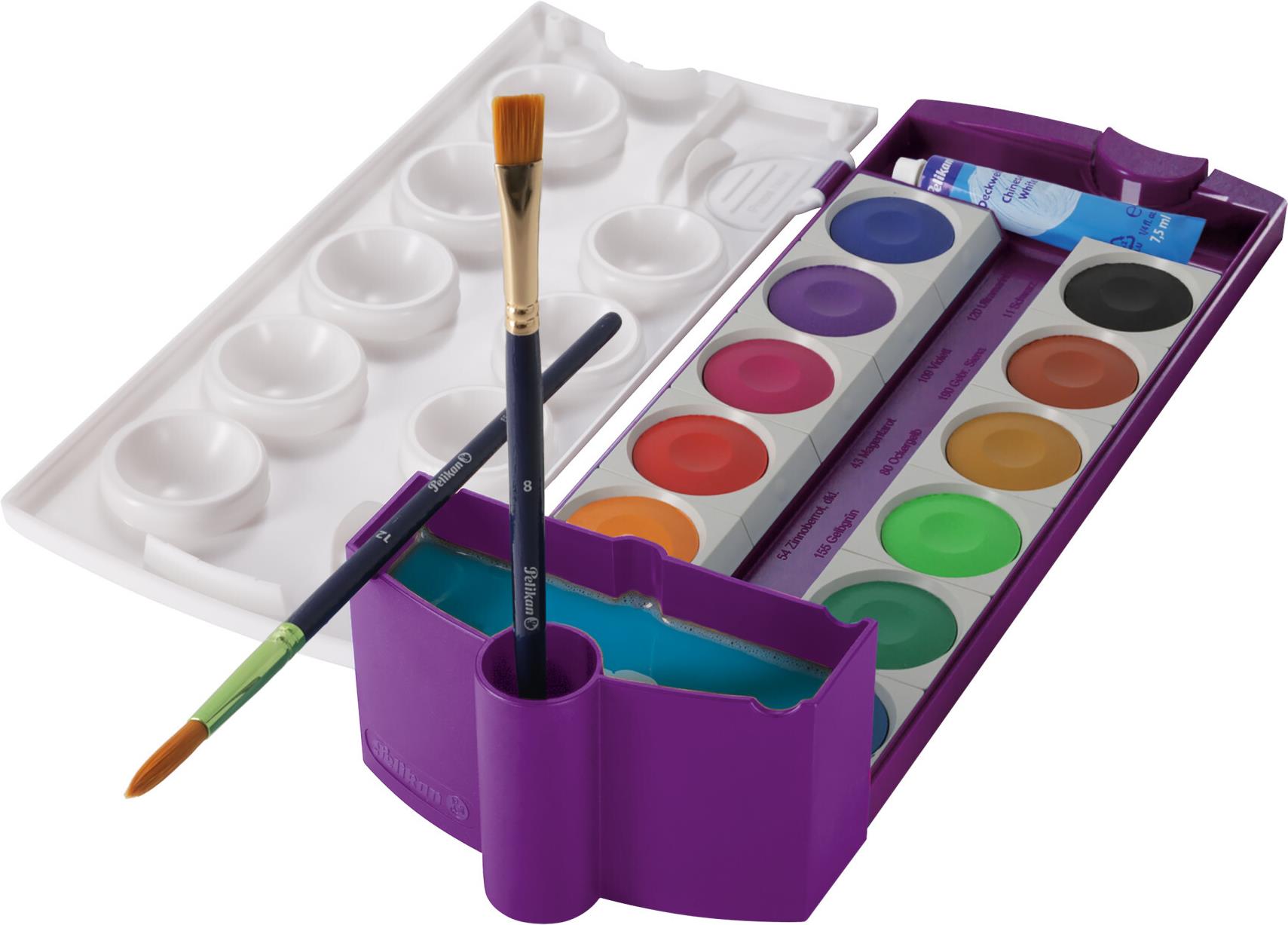 Pelikan Wasserbox WBB für Deckfarbkasten K12, violett mit Pinselköcher und Pinselablage, kippsicher auf - 1 Stück (824019)