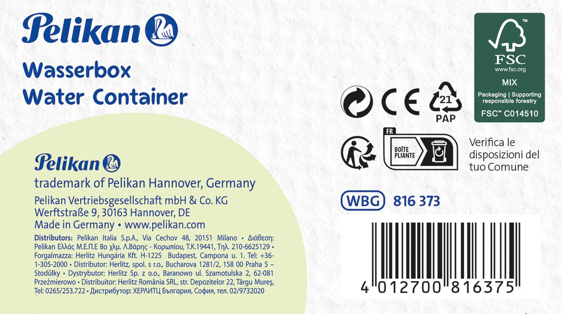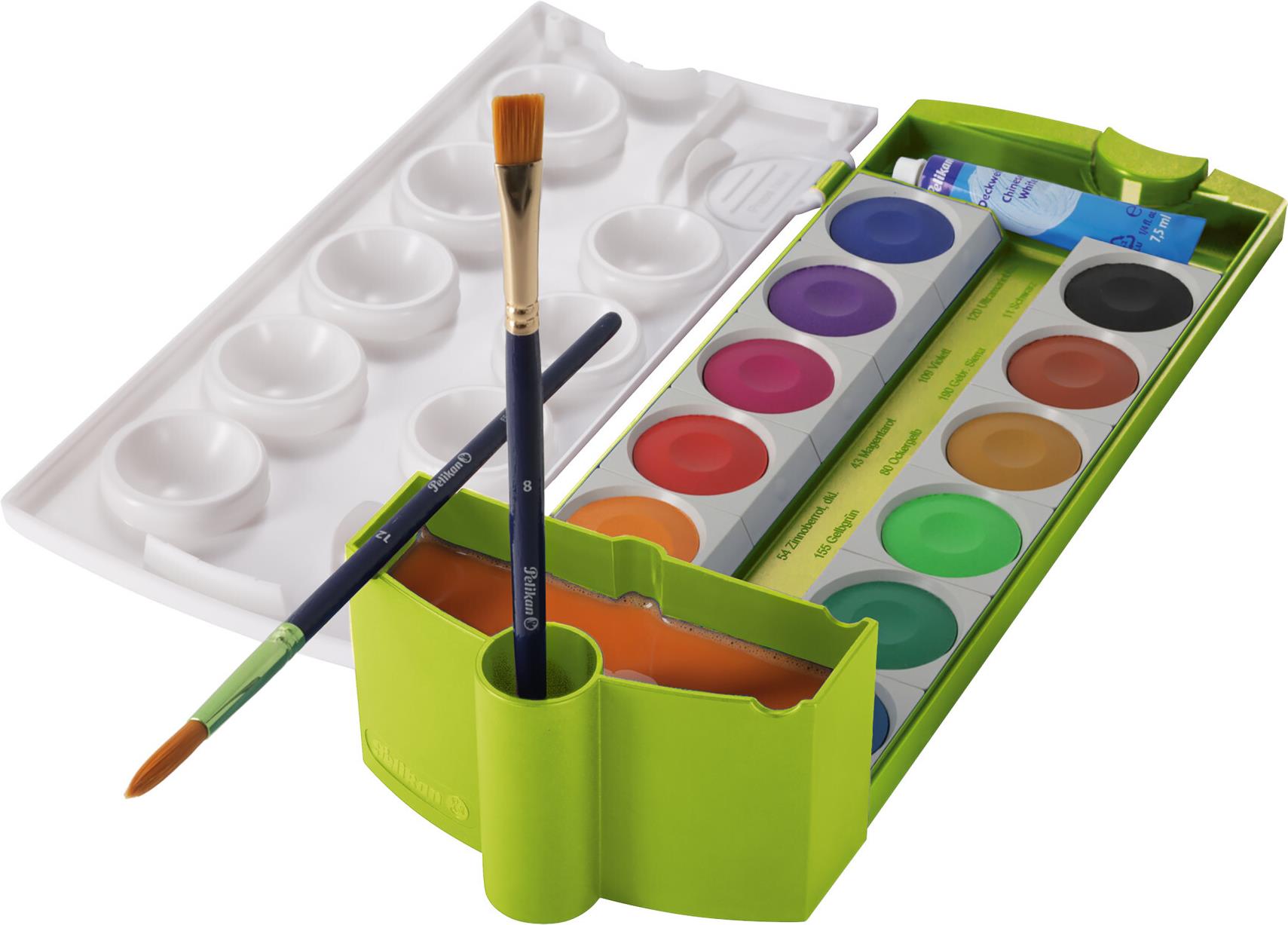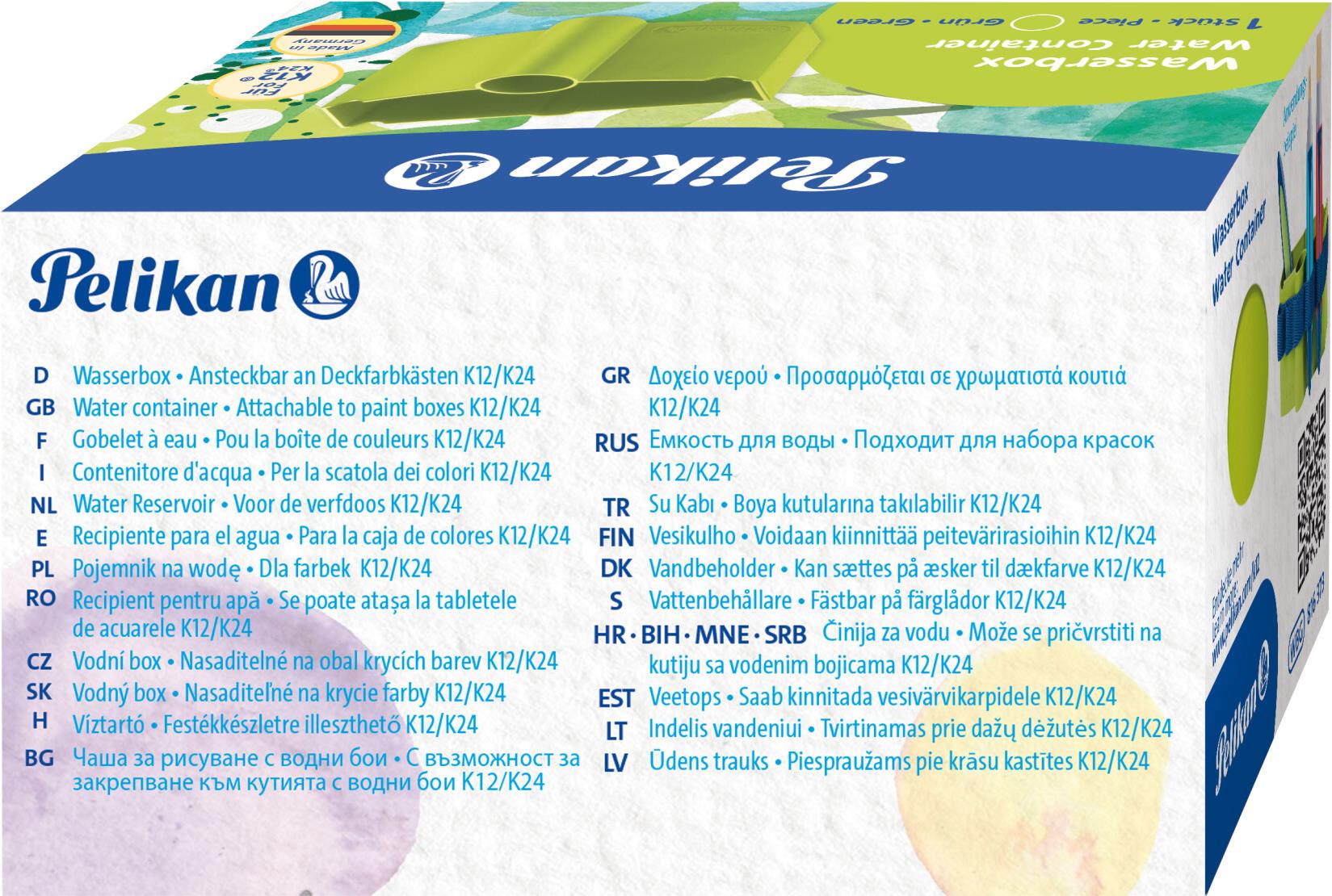 Pelikan Wasserbox WBG für Deckfarbkasten K12, grün mit Pinselköcher und Pinselablage, kippsicher auf - 1 Stück (816373)