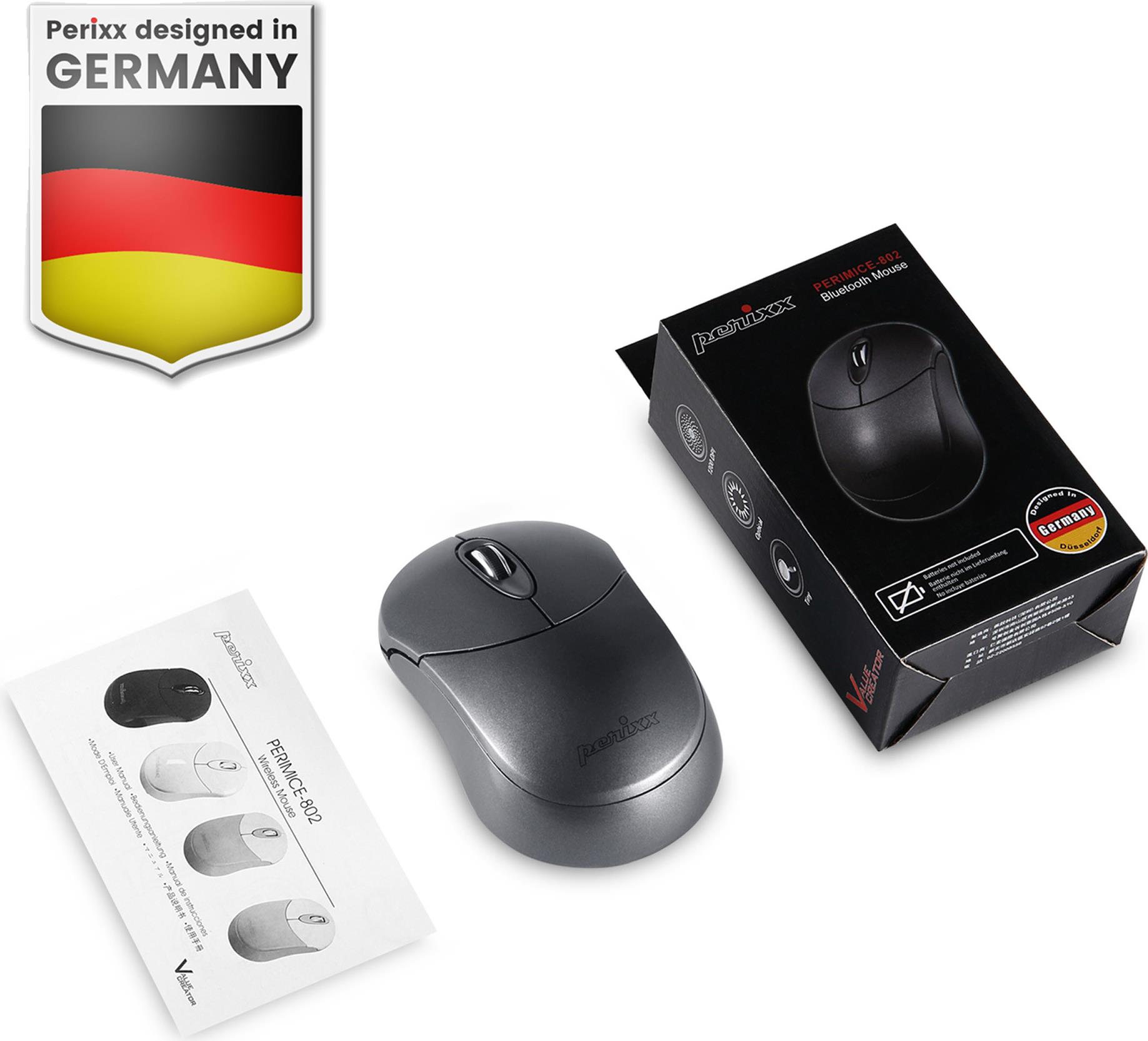 Perixx PERIMICE-802IN Maus Beidhändig RF Wireless + Bluetooth Optisch 1000 DPI (PERIMICE-802IN)