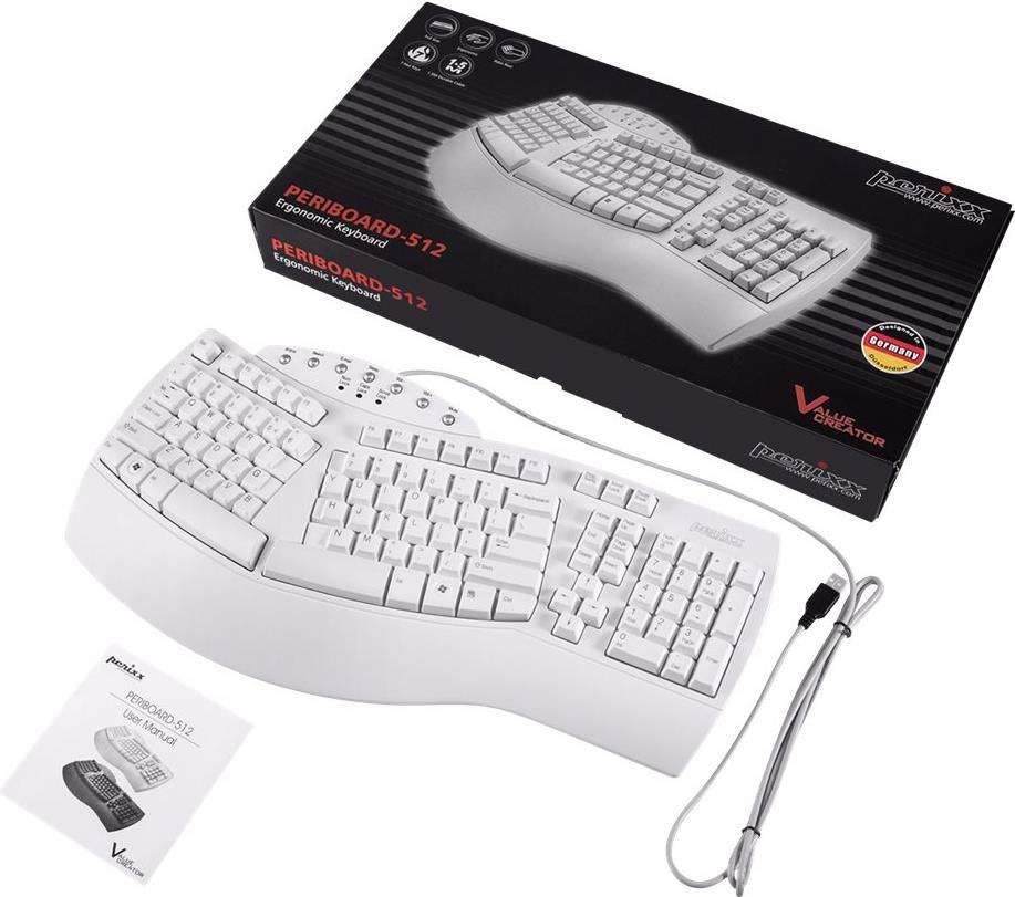 Perixx Periboard-512 USB-Tastatur Deutsch, QWERTZ, Windows® Weiß Ergonomisch (11526)