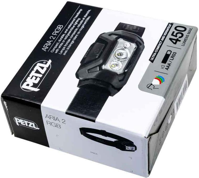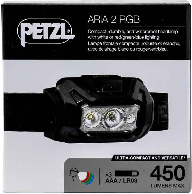 Petzl ARIA 2 HEADLAMP Schwarz Kompakte, robuste und wasserdichte Stirnlampe mit weißem oder rot/grün/blauem Licht, um die Nachtsicht und die Tarnung zu erhalten. 450 Lumen (E070BA00)