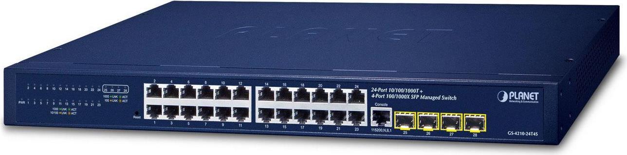 PLANET 24-Port Layer 2 Managed Gigabit Switch mit 4x SFP LAN Switche (GS-4210-24T4S)