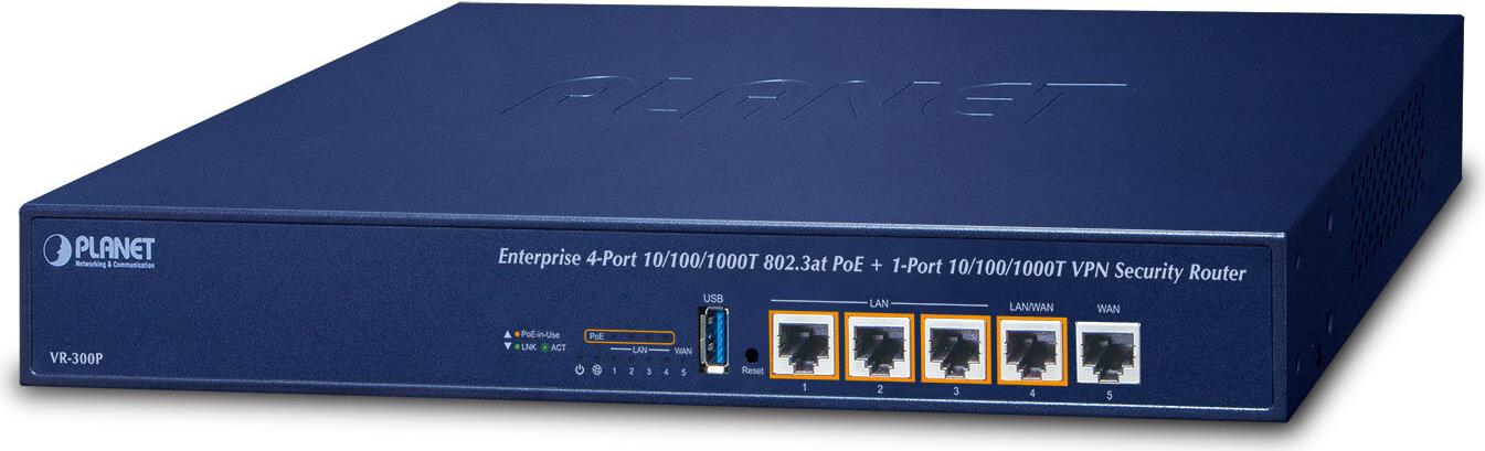 PLANET 4-Port 10/100/1000T 802.3at PoE + 1-Port Gbit Enterprise VPN Security Router Netzwerk Peripherie (VR-300P)