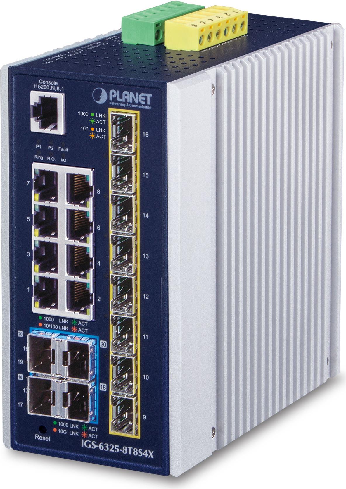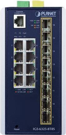 PLANET IP30 Industrial L3 8-Port Managed Gigabit Ethernet (10/100/1000) Blau - Weiß (IGS-6325-8T8S4X)