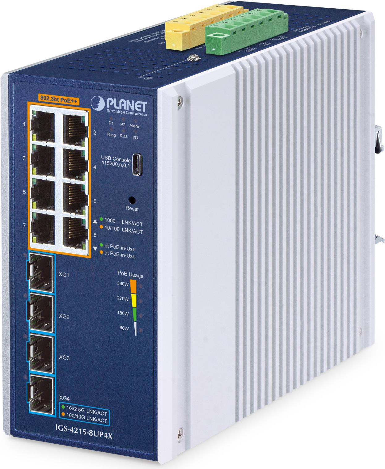 PLANET IP30 Industrial L2/L4 8-Port Managed L2/L4 Gigabit Ethernet (10/100/1000) Aluminium - Blau (IGS-4215-8UP4X)