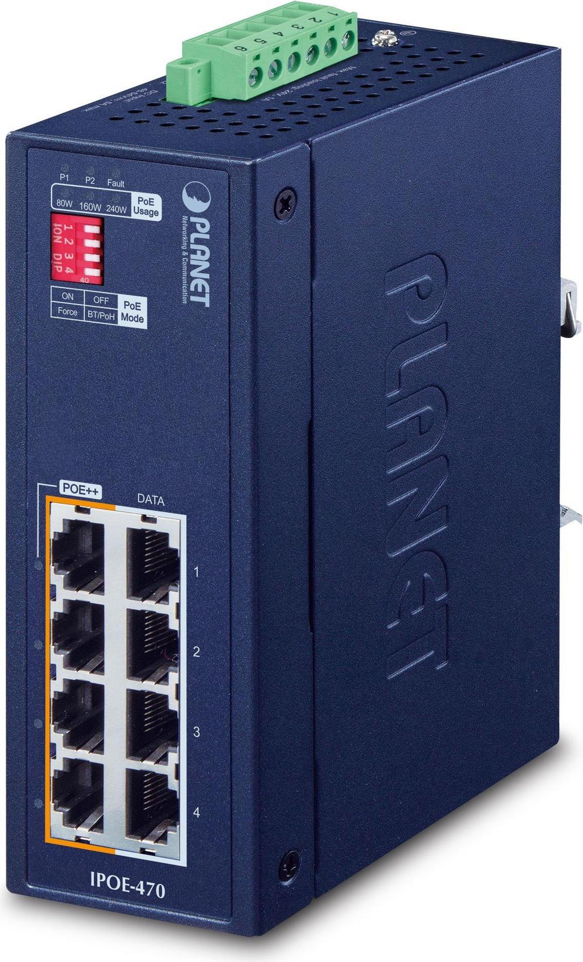 PLANET IP30 Industrial 4-port Power over Ethernet (PoE) Blau (IPOE-470)