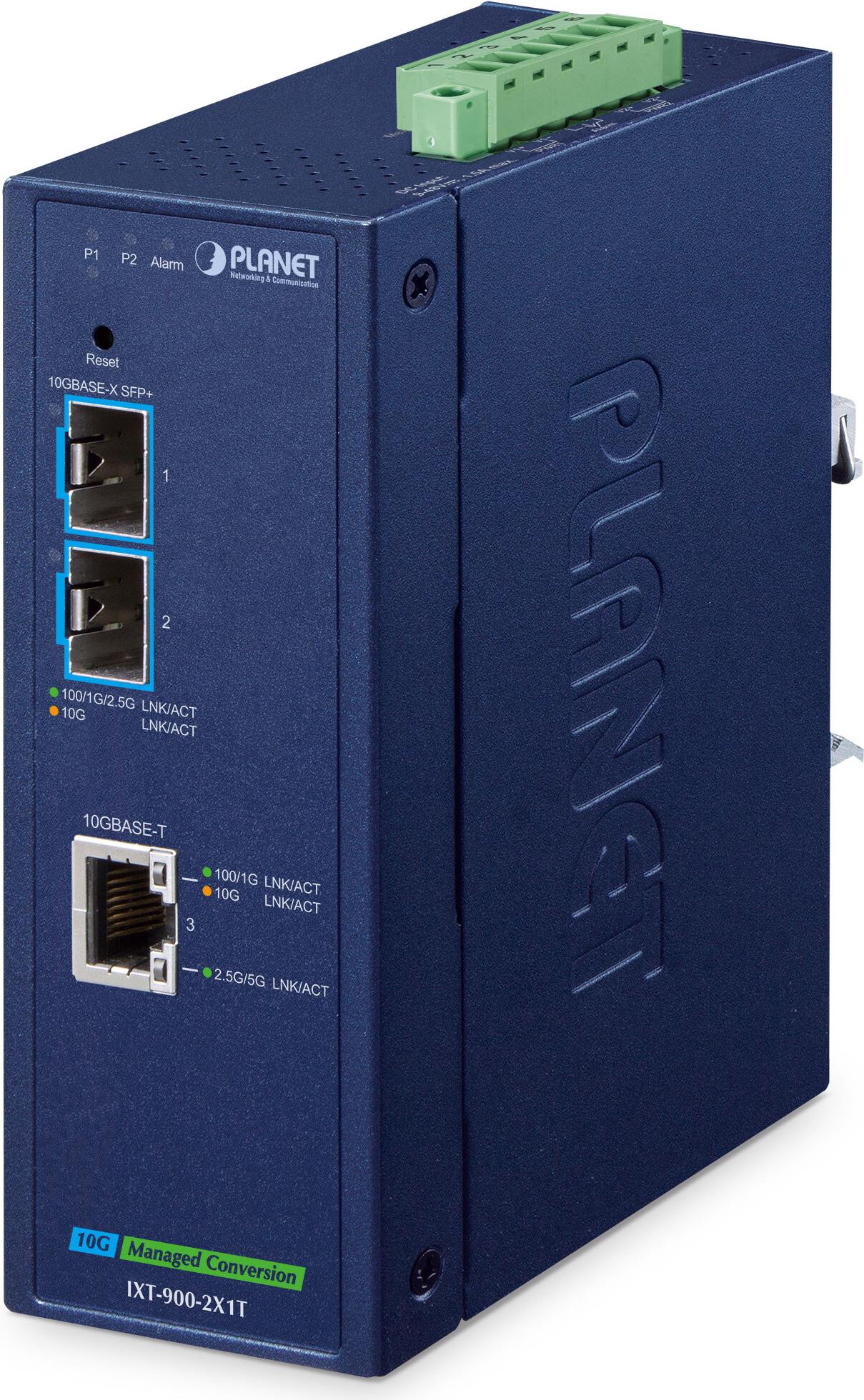 PLANET IP40 Industrial 2-Port Netzwerk Medienkonverter 10000 Mbit/s Blau (IXT-900-2X1T)