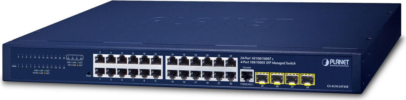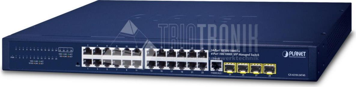 PLANET IPv4/IPv6 - 24-Port Managed L2/L4 Gigabit Ethernet (10/100/1000) 1U Blau (GS-4210-24T4SR)