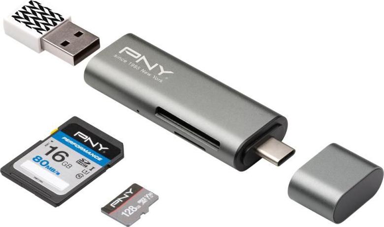 PNY - Kartenleser - 7,60cm (3") 1 (SD, microSD, SDHC, microSDHC, SDXC, microSDXC) - USB-C