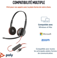 HP Inc. Poly Blackwire 3220 - Blackwire 3200 Series - Headset - On-Ear - kabelgebunden - USB-C - Schwarz - Skype-zertifiziert, Cisco Jabber Certified, Avaya Certified, UC-zertifiziert (93S87AA)
