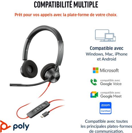 • HP Poly Blackwire 3320 Stereo Microsoft Teams Certified USB-C Headset +USB-C/A Adapter (8X220AA)