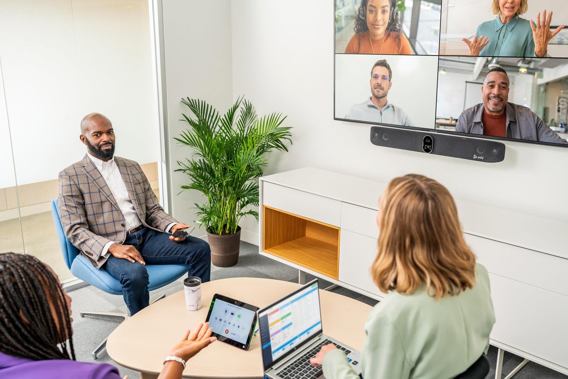 Die Poly Studio X70 All-In-One-Videoleiste liefert hochwertige Sprach- und Videoqualität in großen Meetingräumen. Profitieren Sie von präzisen automatischen Framing- und Tracking-Modi, störungsfreier Audiotechnologie und lebensechtem 4K-Ultra-HD-Video.