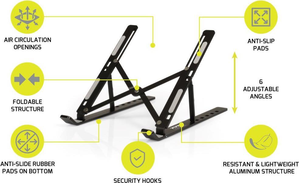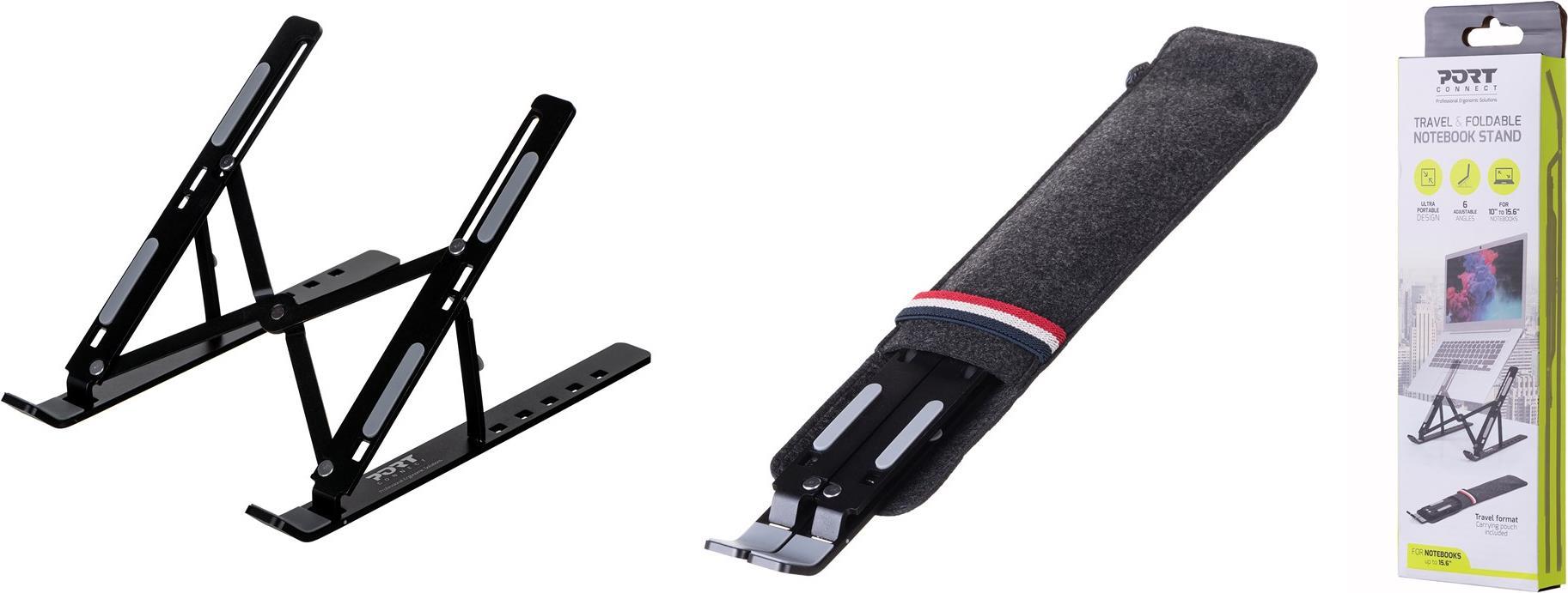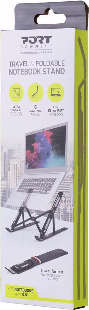 Der PORT Designs PORT Connect Travel & Foldable Notebook-Ständer ist ein unverzichtbares Zubehör für alle, die unterwegs ein Notebook oder einen Tablet-PC verwenden. Dieser Ständer bietet einen einstellbaren Winkel von 15° bis 45°, so dass der Benutzer seine perfekte Betrachtungsposition finden kann, egal ob er arbeitet, Videos ansieht oder im Internet surft. Das faltbare Design und die leichte Aluminiumkonstruktion machen ihn zu einem idealen Reisebegleiter, der problemlos in die mitgelieferte Tragetasche passt. Ein wichtiges Merkmal ist die Stabilität: Die rutschfeste Basis und die robusten Materialien sorgen dafür, dass Ihr Gerät sicher steht. Er ist mit Geräten von 10" bis 15,6" kompatibel und stellt eine praktische Lösung zur Erweiterung Ihres mobilen Arbeitsbereichs dar.