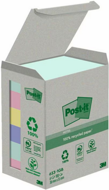 Kleiner Beitrag - Große Wirkung! Entdecken Sie die Post-it Recycling Notes in den bunten Farben. Post-it Recycling Notes sind aus 100% Altpapier hergestellt und mit dem Blauen Engel ausgezeichnet. Sie haften optimal auf Papier und allen glatten Oberflächen und sind rückstandsfrei wiederablösbar. In einer praktischen Vorratsbox.