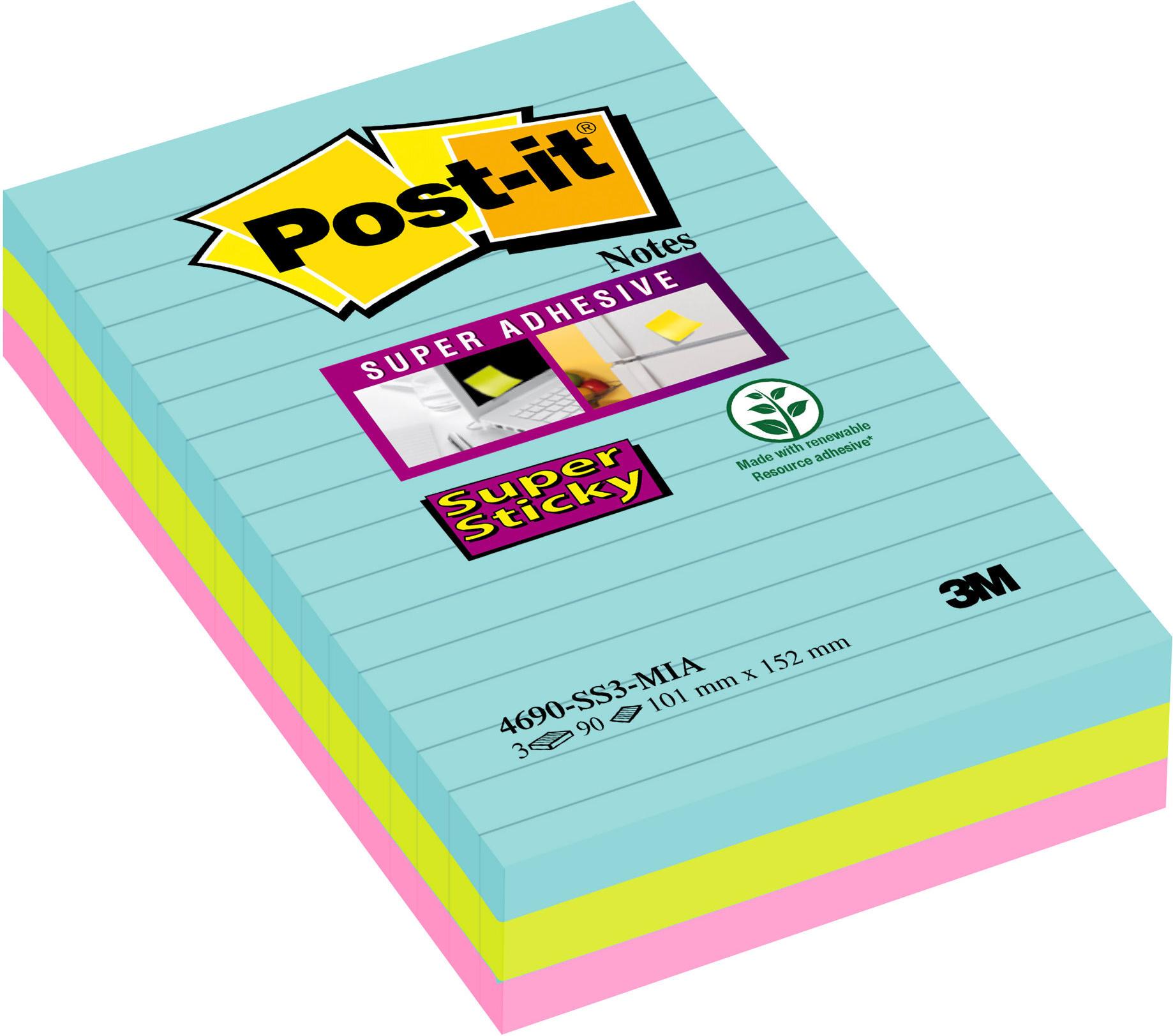 Post-it Super Sticky Notes 4690S3MI 101x152mm f.sort. 3 St./Pack. (4690S3MI)