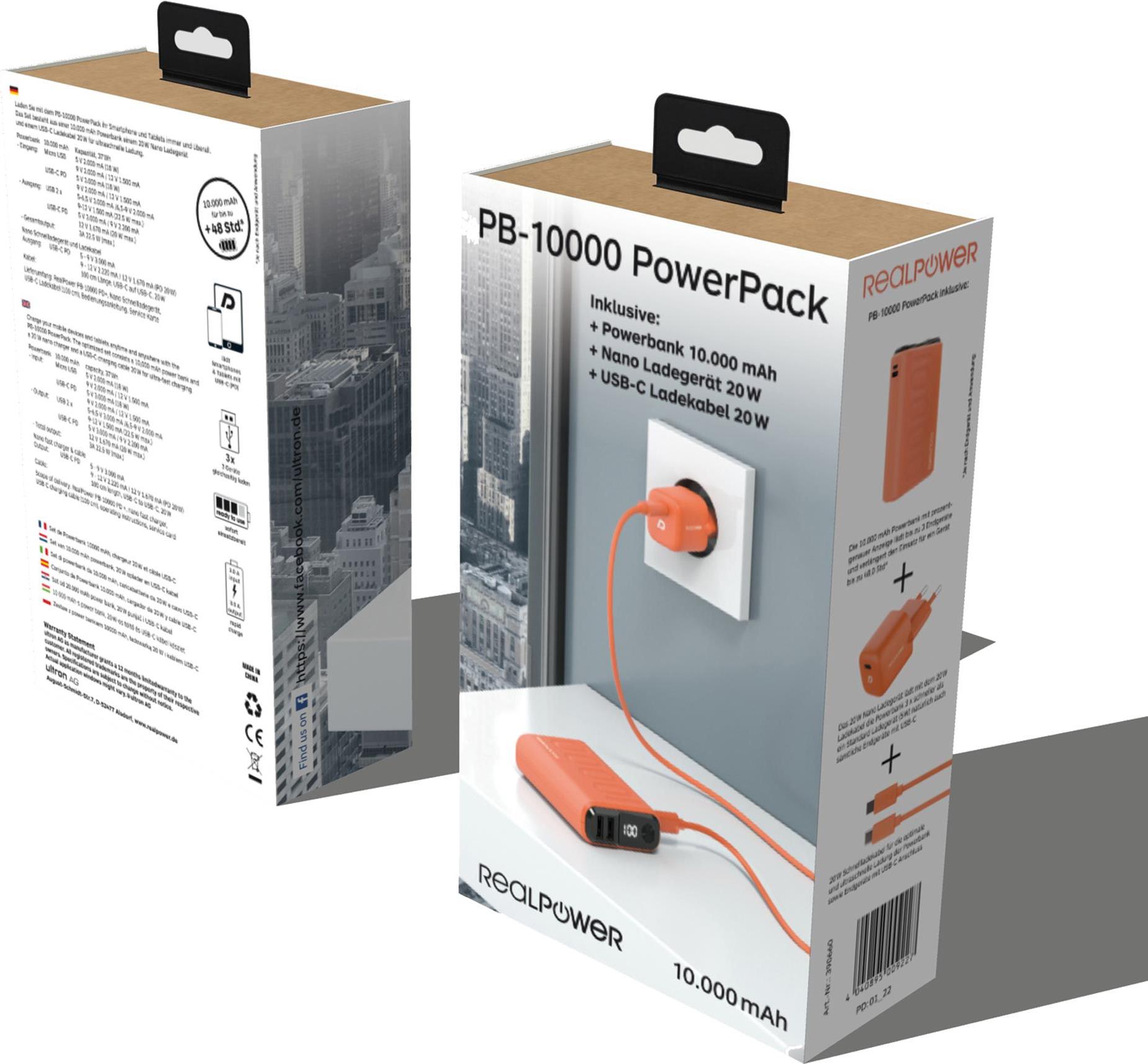 Mithilfe des Power Pack RealPower PB-10000 - bestehend aus einer 10.000 mAh Powerbank, einem Ladekabel und einem Netzteil - wird neben Smartphones und Tablets auch jedes kompatible Notebook innerhalb kürzester Zeit ...