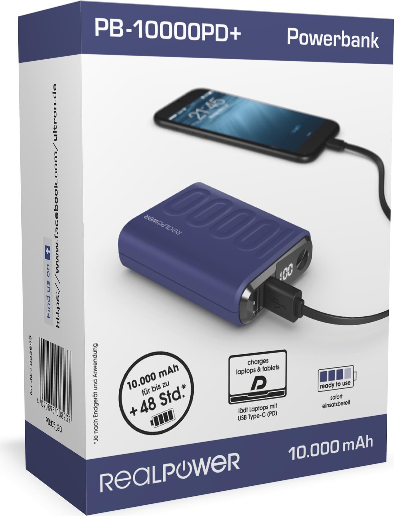 Mit der Powerbank RealPower PB-10000PD+ wird neben Smartphones und Tablets