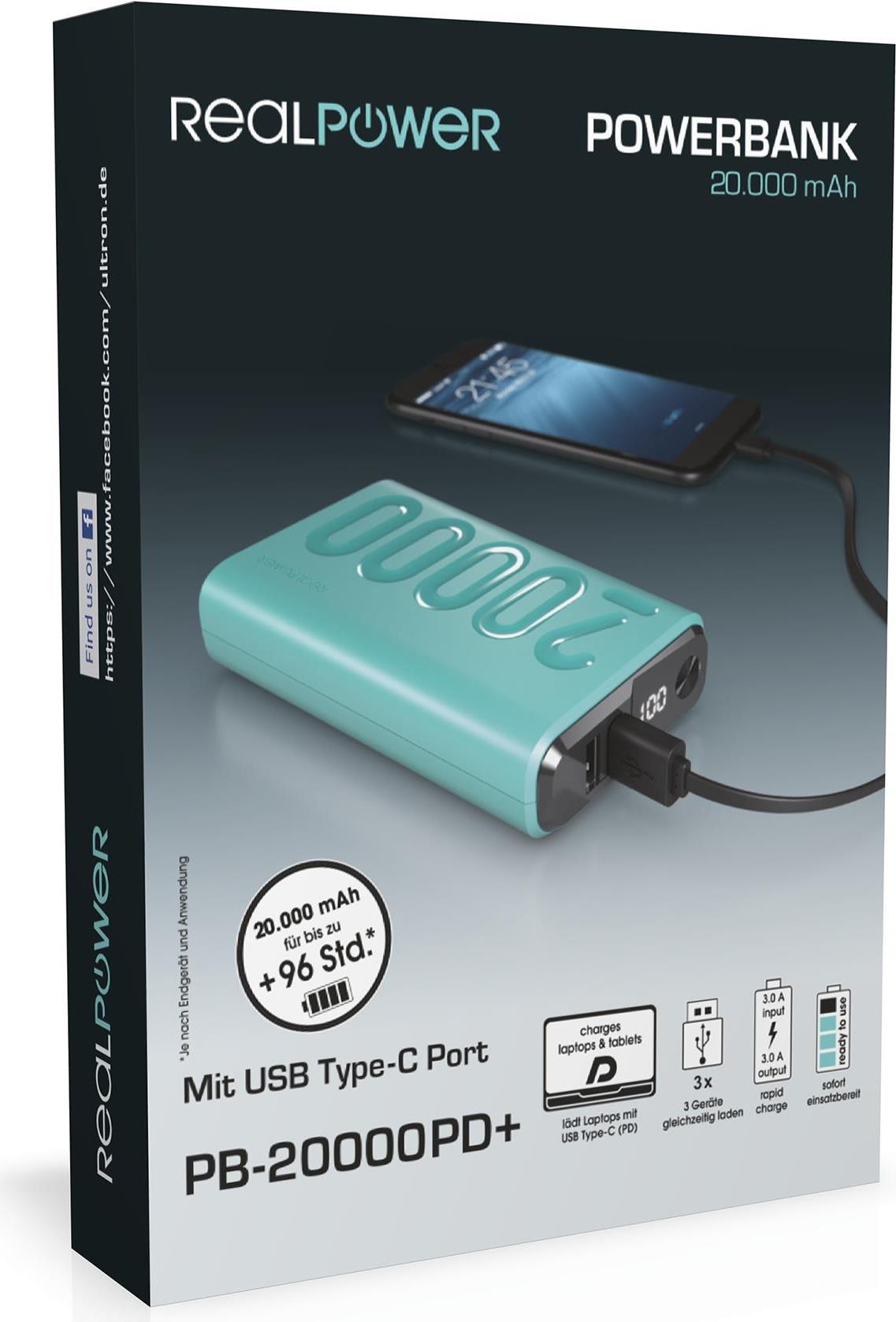 RealPower PB-20000PD+ Nutopia Akkuladegerät 20000 mAh Blau (323373)